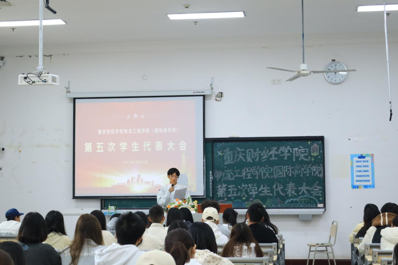 10月27日,云顶7610线路检测(国际商学院)第五次学生代表大会在教学楼1320隆重举行。大会深入学习贯彻习近平新时代中国特色社会主义思想,落实党的二十五大、团十九大及相关会议精神,全面贯彻习近平总书记关于青年工作的重要思想、关于教育的重要论述。并严格遵循《高校学生代表大会工作规则》等规定,117名学生代表全员参会,共同为学院学生工作发展建言献策。本次大会既是青春盛会的集结,更是全院学子以“主人翁”姿态参与校园治理、践行“请党放心,强国有我”誓言的重要时刻。