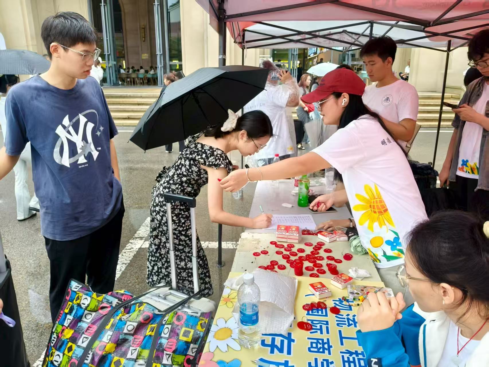 迎新现场秩序井然且充满活力。每日清晨,志愿者们便提前抵达岗位,在校园入口、行李寄存处、报到大厅等关键点位形成服务闭环。在行李寄存区,他们主动上前接过新生手中的重物,快速登记信息并发放行李牌;在报到登记处,协助新生核验身份、提交材料,确保流程高效衔接;待手续办结后,又细致指引新生前往宿舍,并沿途介绍校园教学楼、食堂、超市等核心区域的位置。面对新生及家长关于专业课程、宿舍管理、奖助政策等各类疑问,志愿者们均逐一耐心解答,用专业且贴心的服务,化解了新生初入校园的陌生感与局促感,获得了在场家长“孩子交给你们,我们很放心”的肯定与赞誉。