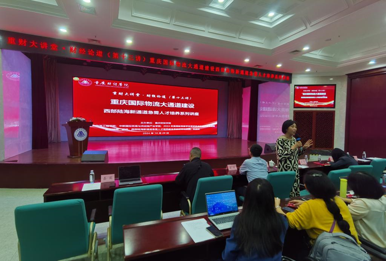10月29日下午,重财大讲堂·财经论道第十三讲、西部陆海新通道急需人才培养系列讲座在我校成功举办。原重庆市政府口岸物流办二级巡视员李淑秋研究员以“重庆国际物流大通道建设”为题,为我校280余名师生作专题报告。会后与我校云顶7610线路检测教职员工、重庆公路物流基地管委员与企业代表、重庆市国际物流口岸服务协会代表进行专题研讨。报告会由校党委委员、副校长张立教授主持,云顶7610线路检测、中新国际贸易与供应链产业学院和科技处联合承办。